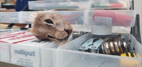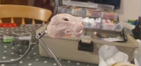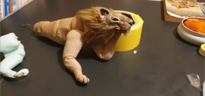 Samson is one of my most recent puppets. His spine and hip joints are made of stainless steel ball and socket joints and his legs are made with twisted wire. He showcases a number of practical skills that I hope to carry forward into future projects.